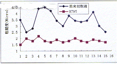 4. 性能稳定、维护简单,无需添加剂且使用寿命长。H795除在配方设计上消除了细菌、金属离子或泄油的影响外,还采用了多功能原料,即所用原料既起乳化作用,又有润滑作用,还可防止细菌滋生。所以能够长期维持平衡、性能稳定。同时,在现场使用中不需要任何添加剂,大大减少和简化了维护工作,降低了使用成本,从而也使加工性能稳定、使用寿命长,消除了停机时间,减少了生产损失、废液排放及降低生产成本。
