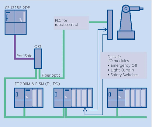 经过长期的大量评估,丰田汽车公司决定使用基于西门子S7 PLC和ProfiSafe的新故障安全技术,将其用于新的“Sienna”牌小型箱式汽车车身车间的安全装置中。由于生产线因车型改变而不断变化,通过使用具有分布式系统的安全PLC就可以进行快速、简单而经济有效的改装。