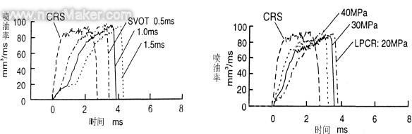 图8 转换阀开启定时对喷油规律的影响 图9 LPCR 压力对喷油规律的影响