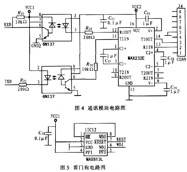 通讯模块采用MAX232,并采取光隔离设计,以提高仪表的抗干扰能力,如图4所示。