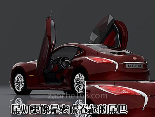 帝豪GT采用很多超级跑车惯用的剪刀门设计,看上去确实非常拉风。这款车的车身线条非常流畅,前轮眉突出,更具跑车的运动气质。帝豪GT的尾灯也融入了老虎的设计,柳叶形尾灯周围是镀铬装饰,从尾部一直向前延伸,看上去更像是老虎卷起来的尾巴。