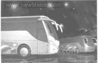 通过构造客车外表面五大片的线型特征,即可生成车身设计曲面,再通过局部细节刻划,即可得到形象逼真的车身设计方案。图1为某客车造型设计线框图;图2为其经过渲染后的造型效果图。本车型在造型开发过程中,采用了流行的大弧面小圆角过渡的整体风格,前围挺拔流畅,车灯沿前围弧线上挑,既起到将前围与侧围融为一体的作用,又使车灯造型别具一格,栩栩如生。后围造型中则部分体现了目前在小车设计中最流行的新锋锐硬边造型风格,通过两条弧线和一尖角打破后围的单调结构,将后尾灯组合得更具特色。