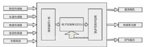 汽车助力转向系统主要分为三个模块:输入信号的采集模块、电子控制单元ECU模块和输出执行机构模块(见图2)。