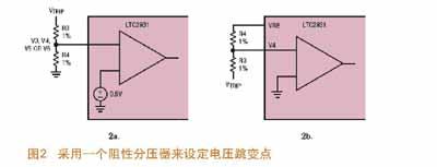 实际门限由集成精准分压器来设定,用于5V、3.3V、3V、2.5V、1.8V和1.5V电源监视。对于其他的电源电压值,具0.5V门限的独立比较器允许使用一个阻性分压器来对几乎任何正电源进行监视,如图2a所示。V4输入还采用用于偏移的集成缓冲基准来监视负电压,并提供了相同的1.5%准确度,见图2b。