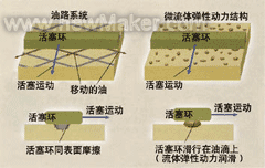 而激光处理过程则会打开预先存在的石墨壳层,从而表面出现许多能够捕捉油的显微凹坑或凹井,由于这些凹坑或凹井不是互连的,因此油无处可逃,活塞环会滑行在所捕捉的油滴上,如图3所示。很明显,该条件非常接近流体弹性动力学(全流体)润滑的理想目标。凹坑尺寸很关键,凹坑必须足够大而起到这种滑行作用,却不能大到产生任何“漏油”现象的地步。精确的凹坑尺寸是奥迪的专有技术。