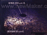 照片中左边比较小的孔直径为50μm,是通过激光钻孔形成的