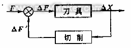 加工颤振是指切削加工过程中,在无周期性外力作用的情况下,完全由加工系统自身产生的一种自激振动。引起加工颤振的根源是切削力的动态变化量△F,其在加工系统中的反馈机理如图2所示。当切削过程中的某些因素(如刀具切到工件材料中的硬质点、材料表面不平整等)使切削力F产生一个变化量△F时,则会在刀具与工件之间产生一个相应的弹性位移DX。由于△X 改变了切削深度,必然会使切削力产生一个新的变化量△F',并反馈回加工系统中。在△F'的作用下又会产生新的位移变化量△X'。如此往复循环,结果可能出现两种情况:①反馈量不能满足系统自激振动条件,初始扰动△F经几次衰减后回复到零,系统迅速恢复到扰动前的稳定状态;②反馈量正好满足系统自激振动条件,初始扰动经若干次激励后导致一种持续不衰的等幅振动,此时加工系统将产生颤振。