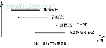 并行工程是一种企业组织、管理和运行的先进设计、制造模式;是采用多学科团队和并行过程的集成化产品开发模式。它把传统的制造技术与计算机技术、系统工程技术和自动化技术相结合,在产品开发的早期阶段全面考虑产品生命周期中的各种因素,力争使产品开发能够一次获得成功。从而缩短产品开发周期、提高产品质量、降低产品成本。并行开发流程如图1所示: