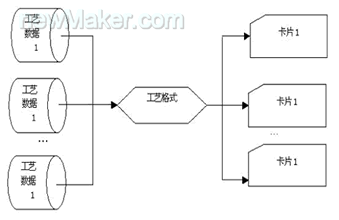 工艺格式是一个完整的工艺中所包含的工艺数据及其类型以及工艺数据之间的结构关系的总和,即工艺数据的组织。工艺格式在工艺卡片和工艺数据之间架起了抽象的桥梁,使企业关心的所有工艺数据都能通过固定的数据库结构去描述,也能通过不同的工艺卡片去反映。工艺卡片只是工艺数据的一种“视图”,对工艺卡片中数据的修改,实际上是对数据库中工艺数据的修改,两者是双向关联的。
