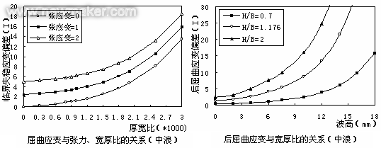 屈曲应变与张力、宽厚比的关系(中浪) 后屈曲应变与宽厚比的关系(中浪)