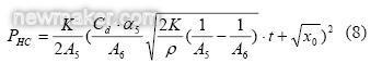 将(1)式和(7)式联立可以得到缓冲压力随缓冲时间的变化规律