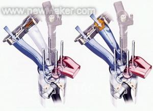 在3.0L TDI发动机中,还采用了共轨喷射技术和压电喷油器。这种新技术也应用在第二代V8 TDI发动机中,与第一代V8 2.5L发动机相比,重量减轻了8kg、功率增大了33kW、输出扭矩增加了80N·m。新型柴油发动机的进、排气调节控制技术采用了与汽油发动机类似的4气门技术。值得一提的是,与Mercedes-Benz公司一样,奥迪公司在发动机的气门控制技术中也发明了4气门技术。由于采用的是柴油和汽油的直接喷射,这就要求喷油器和/或火花塞位于缸盖的中心位置处,方便了每个燃烧室4个气门的配置。