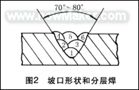 ③因内燃机缸体有一定壁厚,加上所用的焊条较细,所以一般应焊几层,如图2所示。