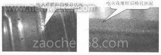 图1 电火花堆焊前后模具状况对比