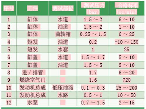 我们可以从试漏机制造厂家和试漏仪的供应商处获得某一工件的泄漏率标准,也可以参照同类产品的泄漏率。表示为发动机各零件及总成的泄漏率测试通常采用的参数。