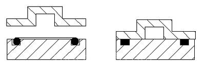 此外,为保证测试精度,气密性测试对测试密封元件的材料选择与结构设计、密封设计、工件定位加紧装置和密封夹具等方面都有一定的要求,如:密封元件应没有弹性蠕变,耐油耐压;密封设计有助于减少不必要的密封性测试的稳定时间(图4所示为好的密封方式);密封夹具必须提供适当的压力来封堵被测工件,夹紧的力量应该是测试压力的3倍左右,同时,夹具支撑框架的强度要足以支撑此压力,而且各封堵汽缸应有可靠的导向,确保封堵位置准确。
