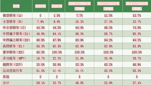颈椎加速损伤防护系统在欧洲各种车型的市场占有率情况