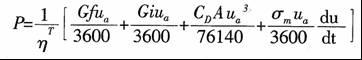 其中:uα为车速;ηT为机械效率;G为车轮负荷;N,f为滚动阻力系数;CD为空气阻力系数;A为迎风面积,m2 , i为道路坡度;m为汽车质量,kg,σ为汽车质量换算系数。