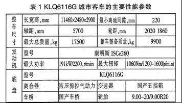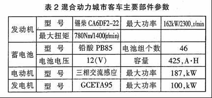 我们以苏州金龙2004年推出的B4系列城市客车为原型,在此基础上进行混合动力各部件的选型和仿真工作。KLQ6116G城市客车的主要性能参数见表1。
