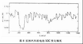 仿真结果表明,该实例混合动力汽车采用并行制动控制策略,在典型的FTP75城市循环工况下能维持电池荷电状态(SOC)的平衡(如图6),并能回收制动能量的55%左右。采用简单的并行制动控制策略在目前来说用在纯电动汽车和混合动力汽车等电动汽车上是比较理想的。
