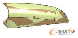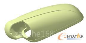 针对该产品,在使FreeStyle中的裁剪(Break Surface or Curve)命令对曲面裁剪后,主要使混合命令(Blend)及Class-A Fillet命令对过渡曲面进行构建。完成后的曲面如图6。同理完成盖板外观曲面如图7。