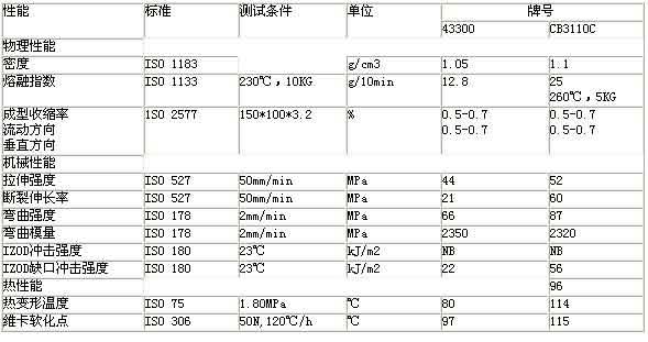 电镀级ABS是通过选择具有一定橡胶含量、橡胶粒径的ABS并通过改性以提高其极性而获得的。表3是某公司生产的汽车用电镀级ABS材料。