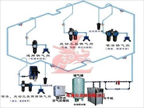 压缩空气供应系统主要包括空压机房和输送管道,还有部分连接软管及连接件组成。