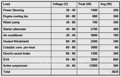 图1. 各种汽车应用及其相关电压和功率范围的几个实例