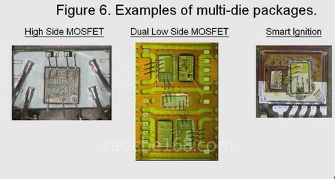 图6所示为目前车载系统中采用多芯片封装的几个实例。这些智能化器件可以提供更高的系统性能监控能力,通过集成保护功能提高功率系统的可靠性。如过流、过压和过热保护等功能都是这类产品的标配。当器件感测到有可能发生上述异常状况时,能够把功率MOSFET置于自我保护整个系统的环境中。此外,这些器件还集成有附加诊断功能,用以监控负载开路或短路,有助于指导汽车机械装置隔离和纠正车辆中出现的问题。