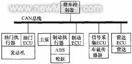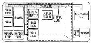 集成前面设计的CAN网络以及各节点,便构成基于CAN纵向的安全车距保持系统,如图4所示。