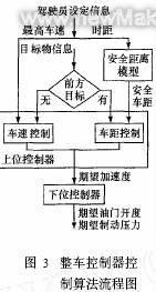 软件部分主要为车距保持系统控制算法,流程图如图3所示。其中安全距离模型采用时距模型,时距由驾驶员设定。