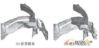 图19 燃料电池轿车原结构后面碰撞时的后纵梁变形