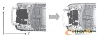 对于正面碰撞中,燃料电池轿车前纵梁吸能效率低及波形特征不理想主要是由于发动机舱内部布置形式不合理,以及部分零部件体积过大所造成的。发动机舱的布置原则应尽量做到沿y方向布局,以保证足够的“碰撞空间”。重新布置发动机舱内电控模块,将原控制主板改为多层刀片式布置,从而将较大的PCU外壳沿x方向缩短,使其尽量接近原发动机的尺寸,如图15所示。