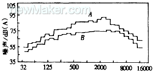 新型2号和3号消声器的第一腔和第四腔内布置有多孔吸声材料。当声波传到多孔吸声材料表面时大部分将被吸收,从而达到消声的目的。内燃机排气消声器选用的吸声材料除应有较高的吸声系数外,还应具有耐高温、耐腐蚀的特性。考虑到柴油机排气噪声中高频程(250Hz~4000Hz)上的噪声最高,见图2。故分别选用超细玻璃纤维和岩棉作为新型2号、3号消声器吸声材料。这两种吸声材料的吸声系数都很高,特别在中高频上的平均吸声系数均超过0.8[3]。超细玻璃纤维耐高温700℃,岩棉耐高温650℃,且这两种材料均具有较好的耐腐蚀性能,所以完全能满足内燃机的使用条件。