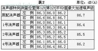 (2)新设计的5种消声器中,新型2号消声器的消声效果最好。发动机台架排气噪声降噪12.8dB(A),汽车整车降噪1.2dB(A)。LT1101汽车使用新型2号消声器后,其车外噪声已低于GB1495-79规定的86.0dB(A)的限值。