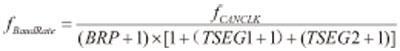 位定时主要用于定义CAN总线通信的速率,对同一总线上的各个节点应定义同一种通信速率,否则无法进行通信联系。CAN控制器的总线工作频率计算公式如下: