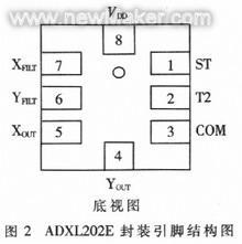 ADXL202的封装形式为LCC-8,其封装和引脚的示意图如图2所示。