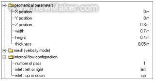 在AMESim部件参数表中,可以很容易地根据发动机舱实际布置关系,设定好各个部件的空间坐标及几何尺寸,包括部件的空间坐标X、Y、Z以及尺寸参数长、宽及厚度等,如图3所示。