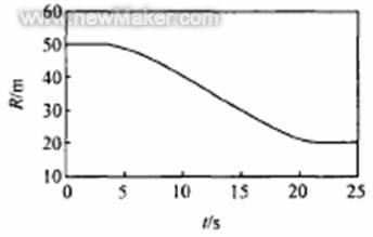 在第2项试验中,设定车辆在保持速率为15m / s( 54km /h) 不变的情况下向右转向,在315 ~2115 s内转向半径由50m 渐变为20m。其转向半径、各轮功率和转矩曲线依次如图4~图6所示。
