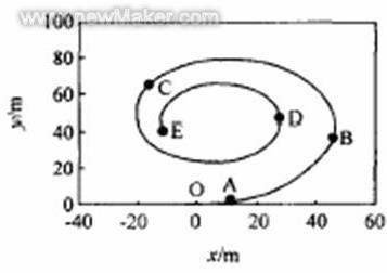 最后结合第1项试验中v和第2项试验中R 的变化,假设车辆向左变速变半径转向,其各轮功率、转矩曲线和行驶轨迹依次在图7~图9中示出。图9中从O开始行驶起计时,车辆每隔5 s抵达的位置依次标为A至E点。