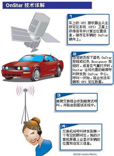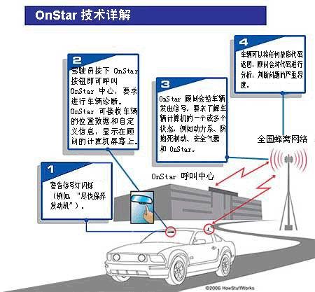 从最基本的角度讲,OnStar包含四项不同类型的技术: 蜂窝技术、语音识别、GPS和车辆遥测。OnStar提供的所有服务都是其中一项或多项技术协作的结果。OnStar的蜂窝服务可由语音激活并且无需动手。 控制台包含一个内置的麦克风并使用汽车上的扬声器。 要拨打电话,只需说出一个电话号码或者是先前存储的与某个电话号码相关联的姓名。 控制台连接到车辆通讯和接口模块 (VCIM),VCIM使用车顶的蜂窝天线将信号传送至OnStar的蜂窝网络。 OnStar的蜂窝服务具有比大多数移动电话都要好的服务范围(虽然在某些偏远地区仍可能无法获得服务),功率达3瓦,而不是一般移动电话的0.6瓦。在某些OnStar服务方案中,用户还可以像使用普通移动电话一样使用蜂窝服务。