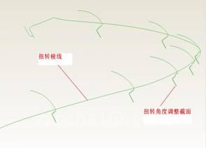 “另一是 ‘棱线扭转(S)’ 功能,该功能需要有一个回弹变形前的零件原始曲面,以及该零件上一条连续的扭转棱线。执行命令之后会在扭转棱线上自动产生一系列垂直截面,并且各个截面的角度都可自由定义。仅仅一条命令即可将所需变形曲面生成,效率非常高。”