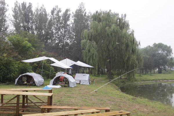 在露营区一角的小湖畔,本次不周山帐篷钓鱼比赛场地布置已经基本竣工,正等着广大钓鱼爱好者前来决一雌雄。本次钓鱼比赛,组委会和不周山主办方都花尽心思,组委会还特别建造了一个观赛亭子呢!