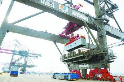 国际领先 3台自动化双小车岸桥、16台自动化轨道吊、18台自动导航运载车、8台自动化转运平台等设备都是中国制造,均采用电驱动,比传统码头节能25%、碳排放减少15%,属国际领先水平 “魔鬼码头” 码头大部分功能如集装箱装卸、堆存等,均由中央控制室计算机控制操作一系列自动化机械设备完成,是真正意义上的无人化全自动化码头系统,而且效率极高,业内称“魔鬼码头” 眼前这辆车的外观十分奇特:没有车头车尾,没有驾驶室;轮胎近1人高,车身架在上面,像是个移动平台;使用锂电能源,运行起来无声无息,没有发动机的轰鸣……昨日,记者在远海自动化码头建设现场看到多台这样的自动导航运载车。">