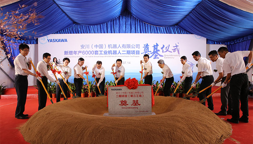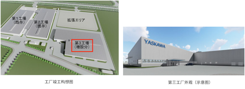 在中国,由于少子老龄化所引发的劳动力不足以及人工成本高涨等问题加剧,工厂生产现场的自动化快速发展。与此同时,随着中国经济的持续增长,汽车关联市场之外,其他以智能手机为首,电脑,家电产品,通讯设备和重物搬运等领域对机器人的需求不断扩大。为应对该需求,安川(中国)机器人有限公司,在第1工厂、第2工厂的基础上,扩建第3工厂,强化需求地生产体制的同时,增强当地开发体制。第3工厂的建设加上第1工厂及第2工厂的重组,生产能力将扩大至1500台/月。