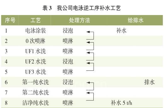 应用电泳超滤技术,设计多道水洗,采用逆工序补水(见表3)。