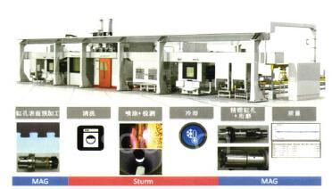 (7)喷涂。三轴,带交换托盘;西门子840D控制系统;缸孔直径72~90mm,单极燃烧器(150A);对于4缸发动机直径为80mm的缸孔,高度为130mm,参考节拍为158s(见图3)。