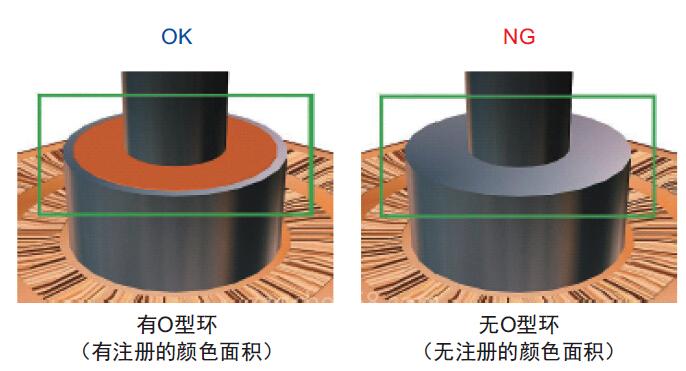 偏光滤镜能抑制工件的油光,利用颜色抽出功能对颜色进行判断。由于是区域检测,只要在检测区域内就不会受错位影响,可进行稳定检测。