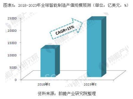 2017年,具有连接和感知能力的机器人继续引领智能制造发展,随着AI技术的进步,工业机器人也变得更加智能,并能够感知,学习和自己做决策。前瞻产业研究院结合当前全球智能制造的发展现状和发展趋势,保守估计未来几年全球智能制造行业将保持15%左右的年均复合增速,预计到2023年全球智能制造的产值将达到23108亿美元左右。