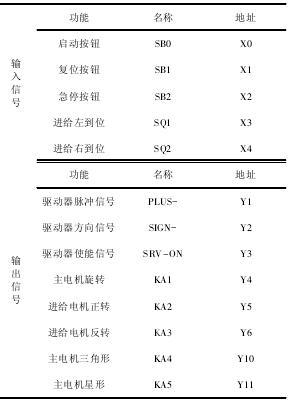 根据自动铣削机床的动作控制要求,需要 PLC 输入端子 5 个,输出端子 8 个,具体内容如表 1 所示。
